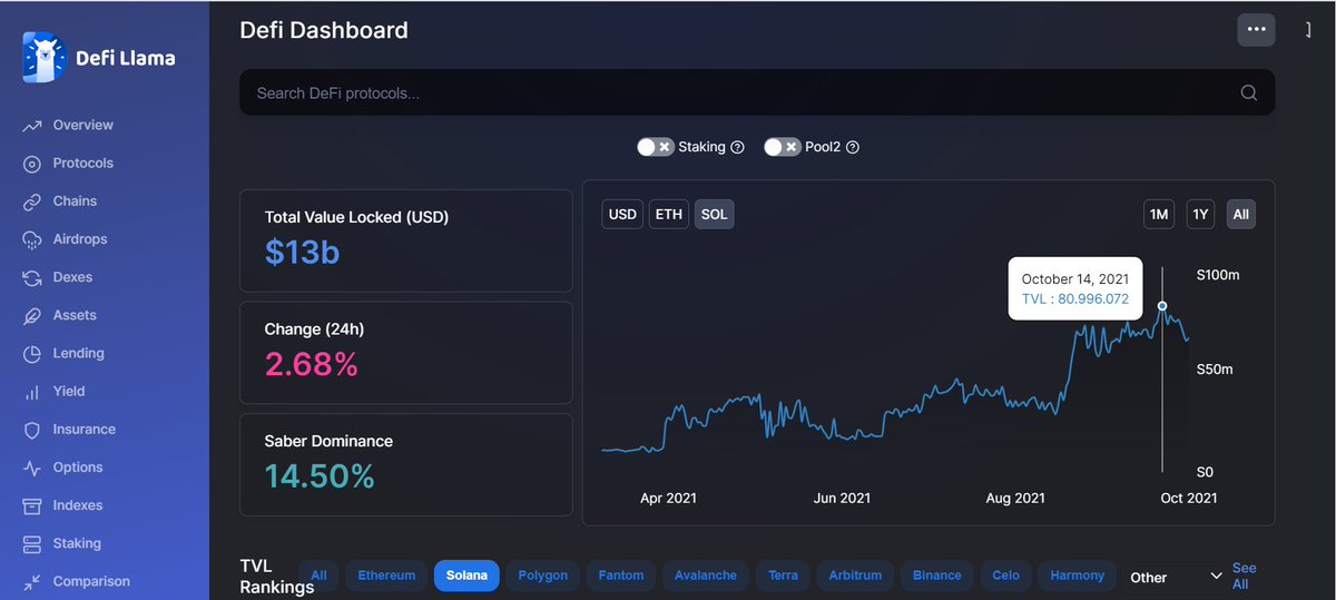 4/8 Cuando analizamos el TVL de los protocolos #DeFi en la red #Solana medido en el token de la red que es el #SOL observamos que fue el 14 de octubre cuando alcanzó el máximo de 80.996.072 y desde entonces está bajando a 65.560.442 SOL por lo que ha caído desde su máximo un 19%
