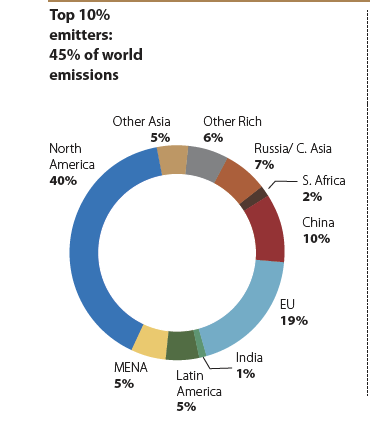 C&P have three potent graphics. First - Share of emissions from Indians among world's top 10 emitters who emit 45% of world emissions -- only 1% of 45%, i.e. 0.45% of global emissions. NORTH AMERICANS AND EUROPEANS AMONG TOP 10% CONTRIBUTE 27% OF GLOBAL EMISSIONS.