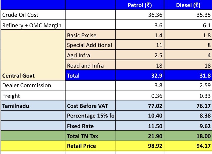 🔆 டீசல் மீது மத்திய அரசு ரூ31.80 வரி விதிக்கிறது. மாநில அரசு ரூ18.0 விதிக்கிறது ==>₹49.80