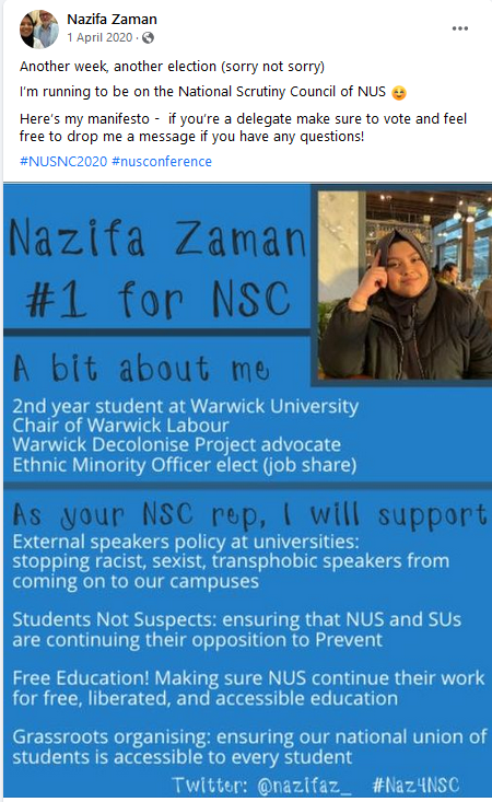 One joiner is Nazifa Zaman, West Midlands representative of "Young Labour" and Chair of the University of Warwick Labour Society. What a pick! 1/8