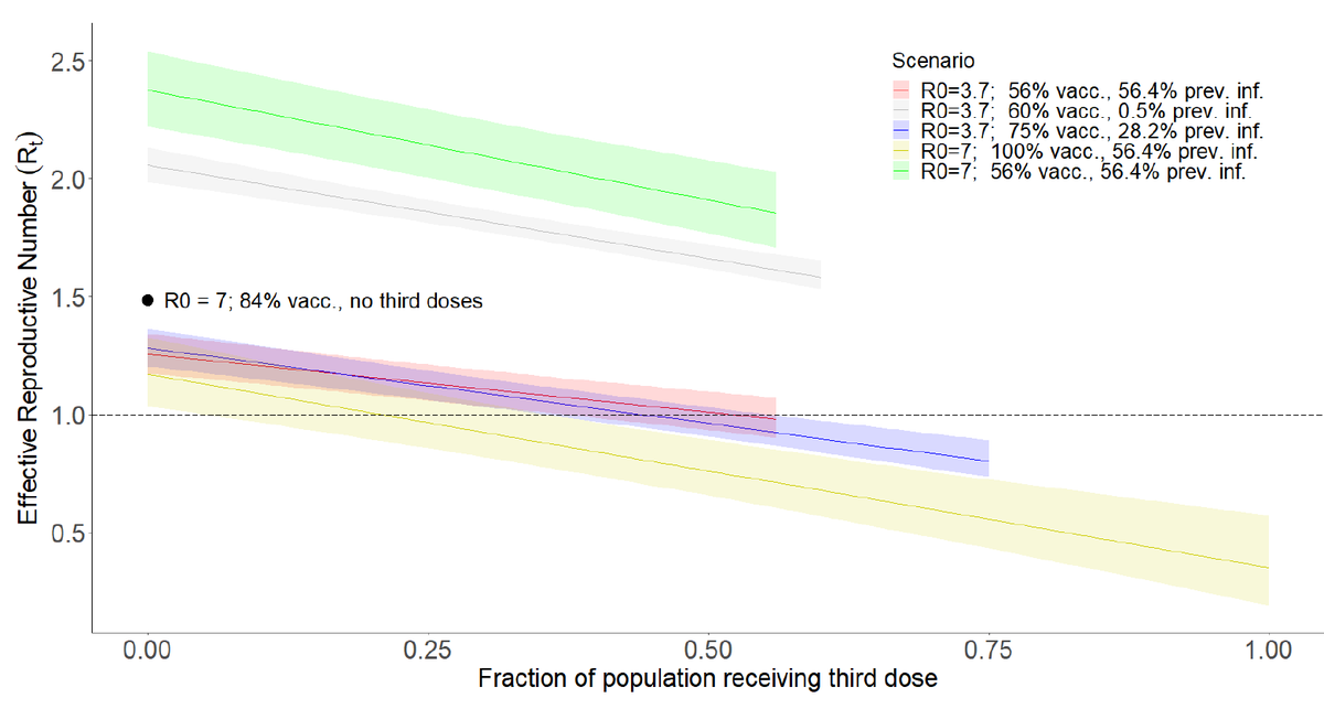 tl;dr 3rd dose could significantly reduce Rt & stop some surges, but doses should 1st go to unvaccinated if possible