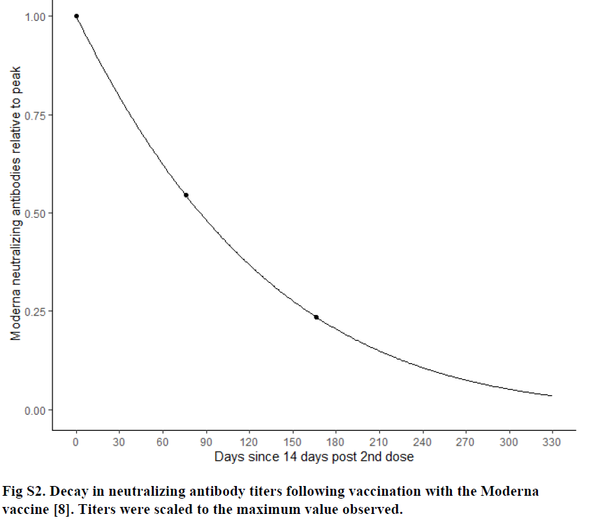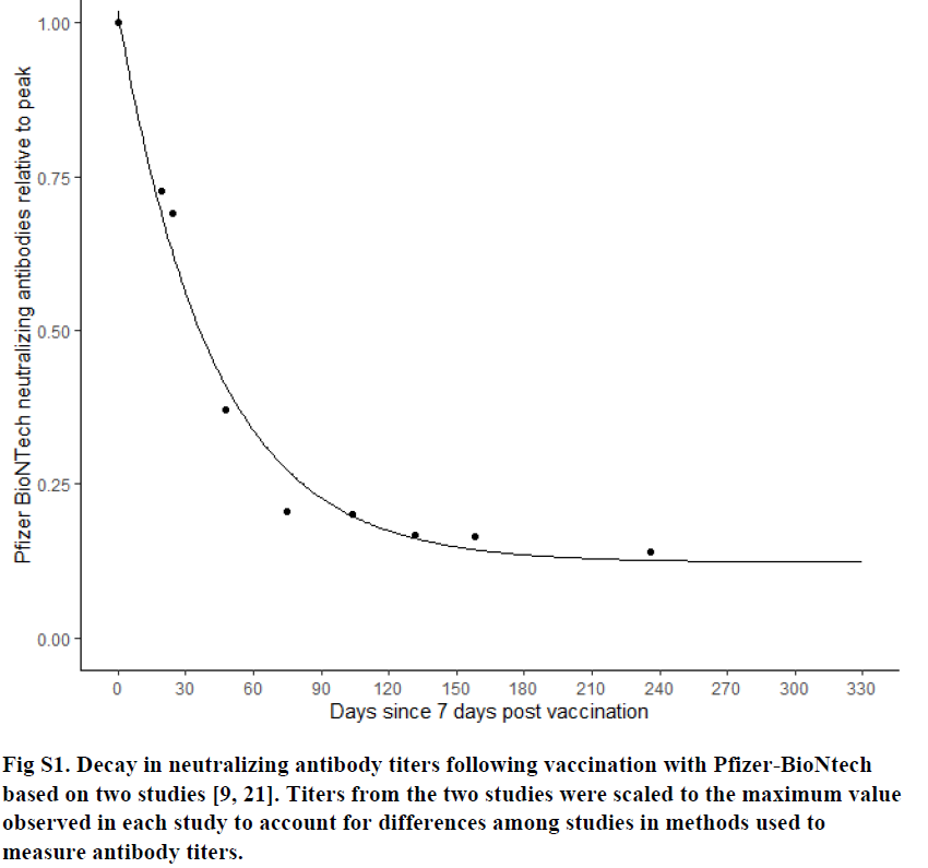 To take into account past vaccinations & infections, we had to estimate waning of protection based on patterns of waning of antibody levels for Pfizer, Moderna, previous infection & hybrid immunity & time series of infections & vaccinations by vaccine type.