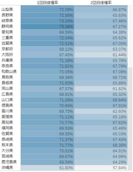 全国で2回接種率が60%未満なのは、現時点で沖縄県のみです。