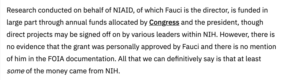 Moreover, what is this article even fact checking? Where this experiment is described, including in my own piece, it's correctly identified as funded by NIH, not NIAID (NIMH is part of NIH). There's only ONE prominent place where it's wrongly identified, and that was in a TWEET.