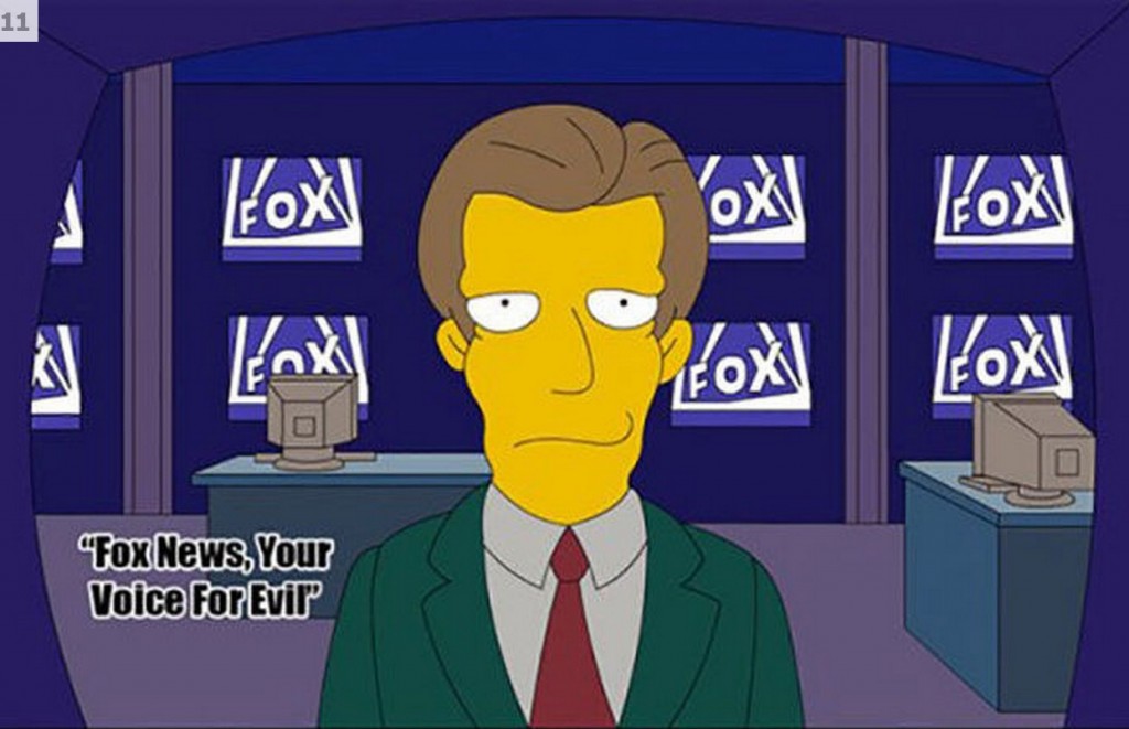 El contrato de los productores de Los Simpsons les permite escribir sus propios guiones sin interferencia de FOX. Esto les permite hacerse la burla de la propia cadena televisiva.