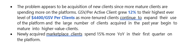 Clients acquired from 2020 and past, are increasing their spend on the platform. I noticed this trend when they used to report retention metrics.