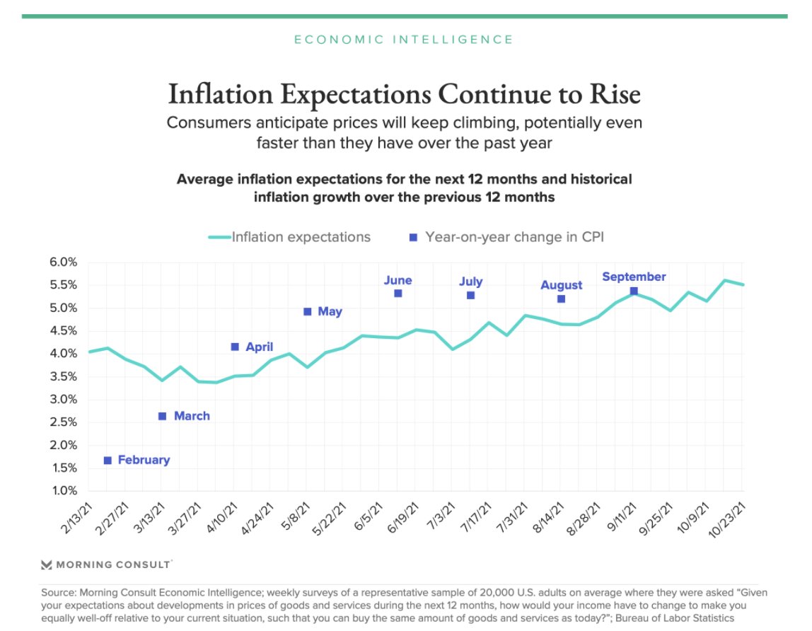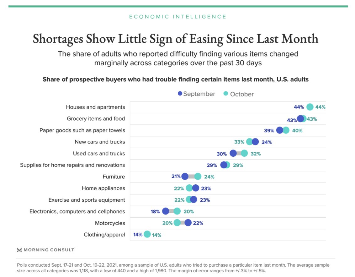 Pervasive shortages are not only making items difficult to find, but also driving up prices. 50% of Americans in October decided against a purchase because the item was more expensive than expected. morningconsult.biz/3mlEuqM