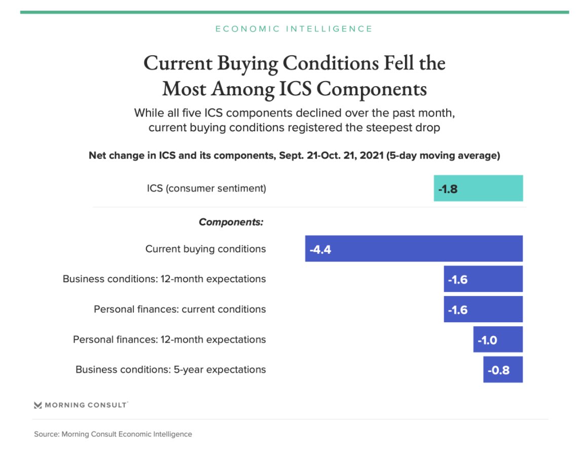 The most significant driver of the decrease in consumer sentiment was a 4.4-point decline in consumer perceptions of current buying conditions. morningconsult.biz/3mlEuqM