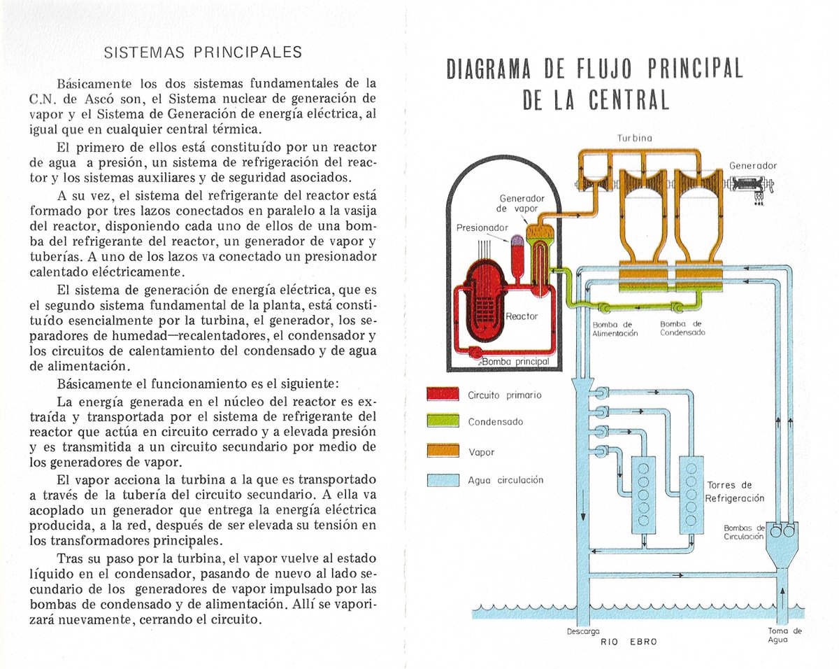 Diagrama de flujo dy descripción del funcionamiento de cada uno de las unidades de Ascó, el habitual en un reactor de agua a presión (PWR) de Westinghouse.