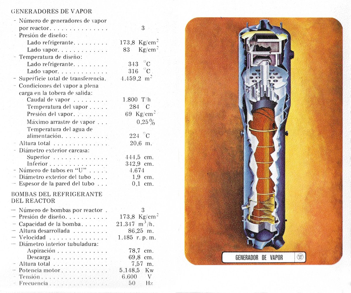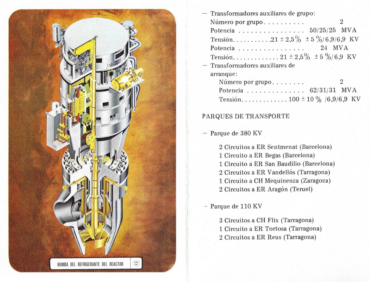 Y finalmente la bomba bomba del refrigerante del reactor (3 por reactor), con su descripción en la anterior imagen, además de datos sobre los transformadores principales, transformadores de arranque y parques eléctricos de 380 kV y 110 kV.