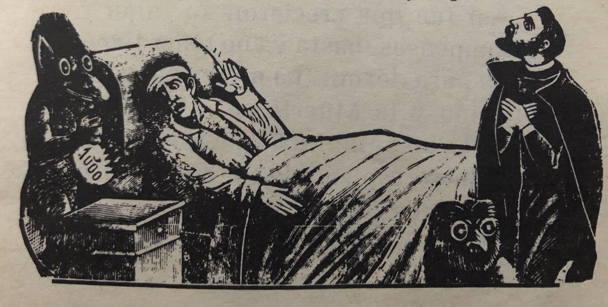 …comadre la muerte a los pies de la cama; y después de muchas pantomimas dice: “señores, la enfermedad es maligna, pero sanaré al enfermo en 8 días. Y así sucedió. En otra ocasión, el doctor fue llamado a casa de un riquísimo caballero que moría sin que nadie diera con el…