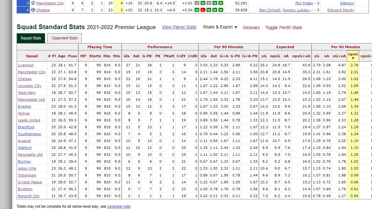 Now, the plus of this is that Chelsea are obviously much more dangerous going forward. Their NPxG this season is high - even including the MUFC game, they rank 4th for that metric, higher than Arsenal Liverpool and Spurs 👍
