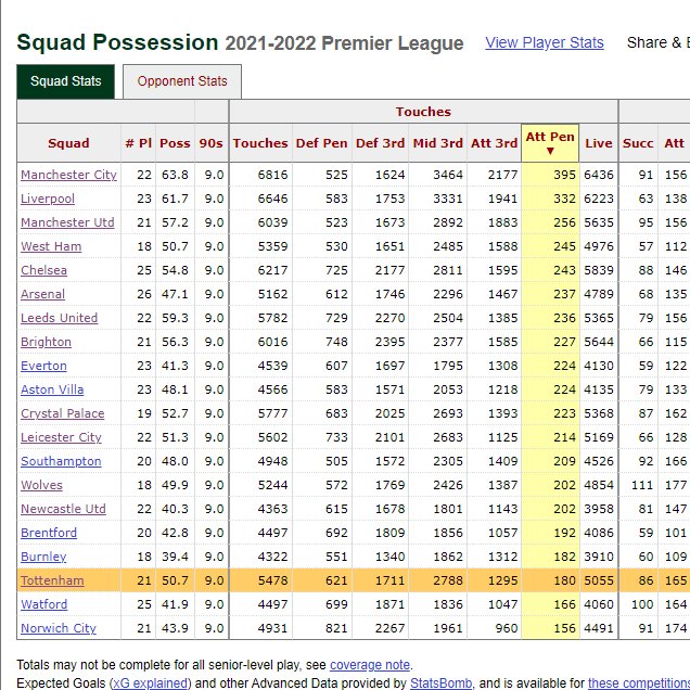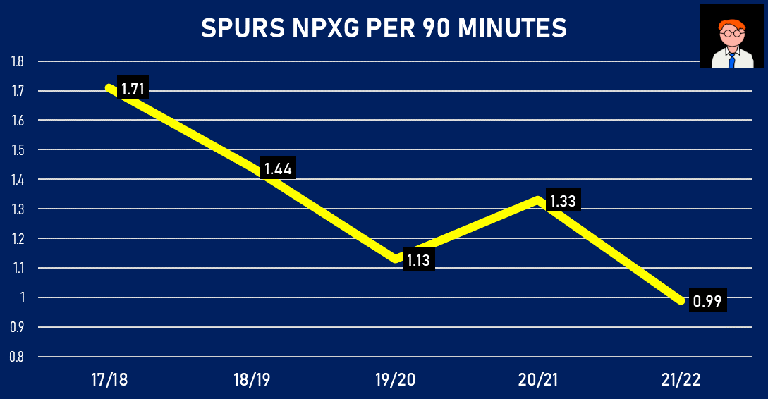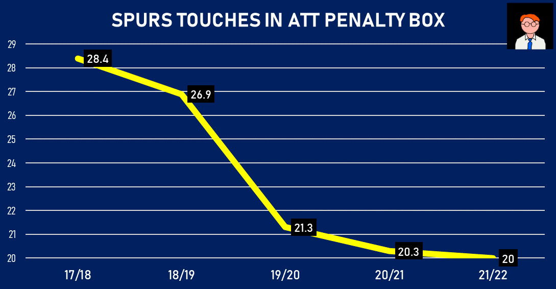 Since 2017/18, Spurs have taken LESS AND LESS touches inside the attacking penalty box per game🤯