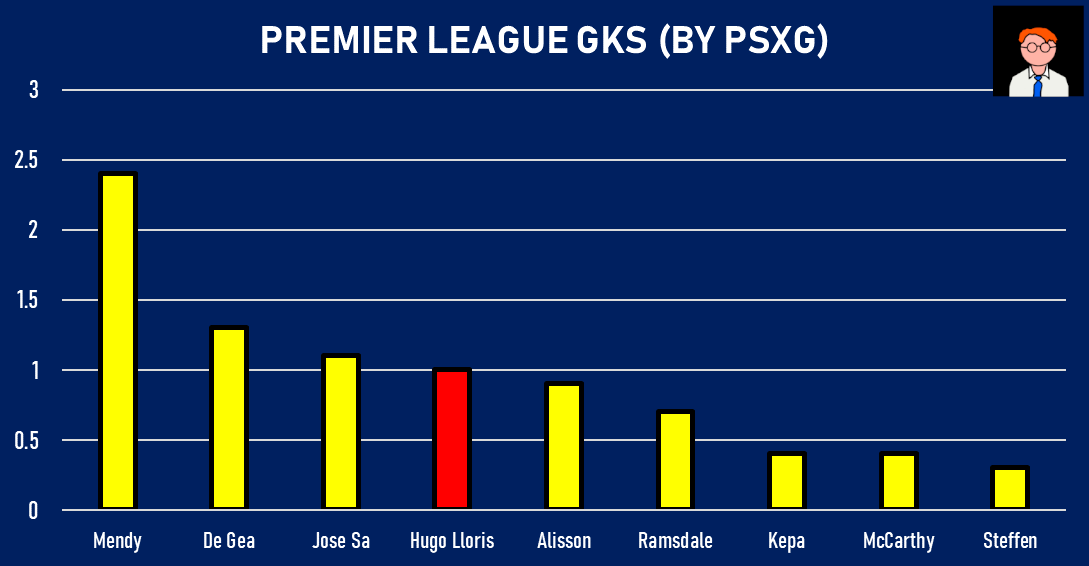 Spurs have been expected to concede 13 non penalty goals - Lloris has conceded 12 - doing well.