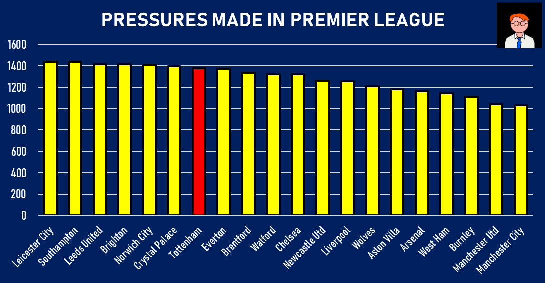 Spurs have actually made the 7th most pressures in the Premier League this season - that's not to say it's cohesive, but it shows the work rate is there 🔋