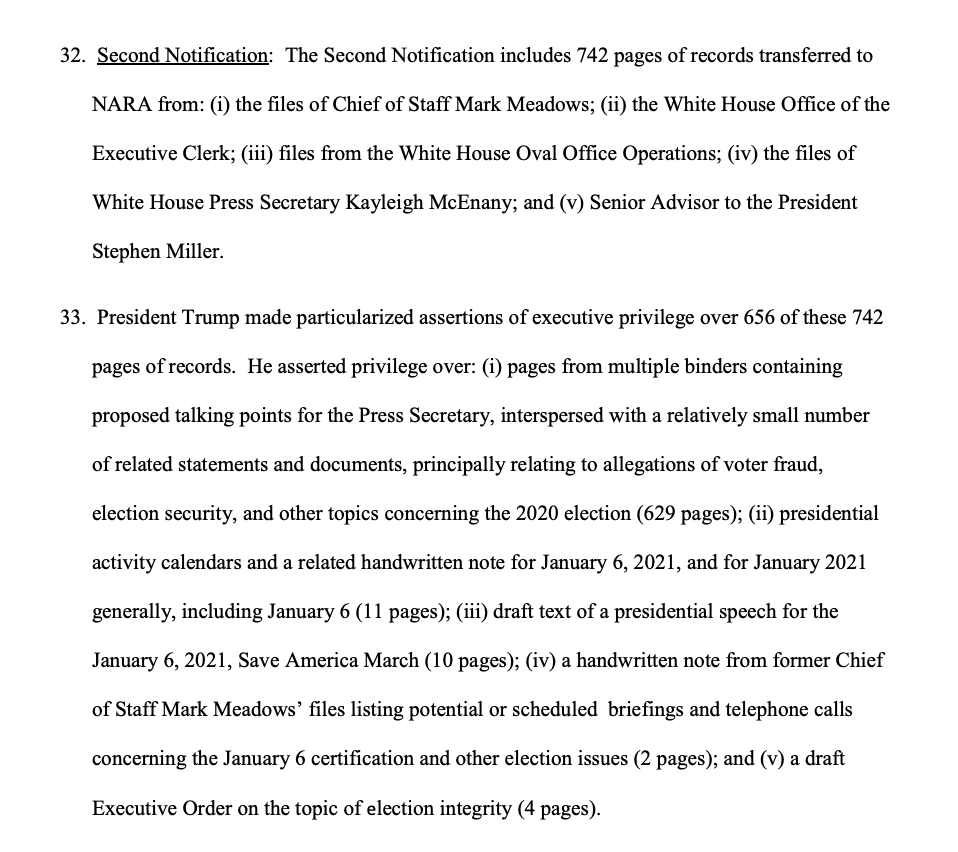 EXPLOSIVE late-night court filing fomr National Archives details what Trump is trying to block the Jan. 6 committee from obtaining.