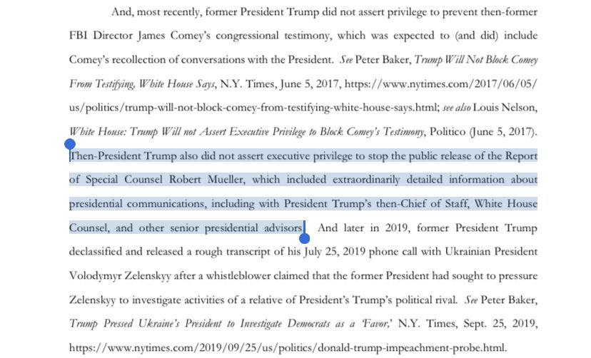 One factor is that presidents have throughout history waived executive privilege on matters of national significance, like Bush post-9/11 — and Trump himself when he decided not to block the Mueller report from coming out. 👀