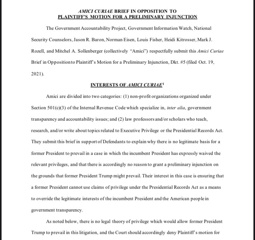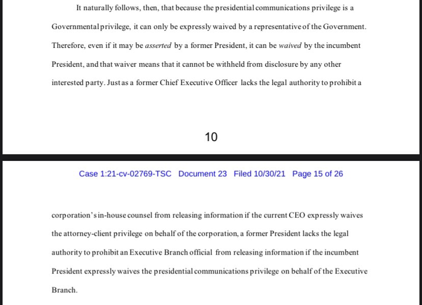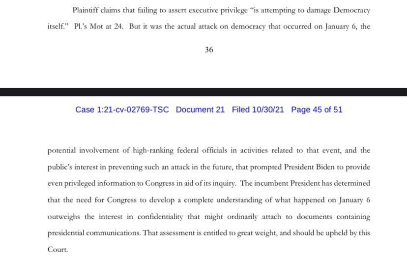 The Jan. 6 committee filed its own legal brief tonight too, rejecting Trump's claims of executive privilege as 'weak' and legally unsupported. Upholding them, they say, could impede efforts to prevent a future attack on elections.