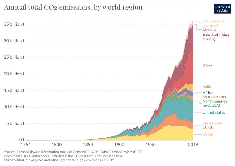 The burning of fossil fuels for energy to generate electricity, power our transport, produce our consumer goods and heat our homes 🏭 🚗 ✈️ 🏠