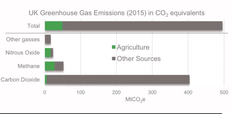 Methane is 28x more warming than CO2; this is important for farming because agriculture contributes more than half of all methane in the UK, primarily from ruminant digestion 🐄