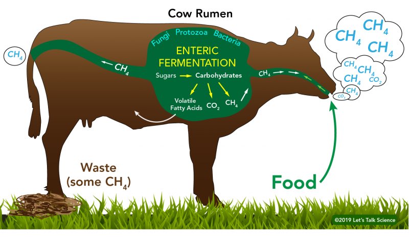 Essentially, CH4 is a byproduct of converting pretty indigestible (to us) grass into tasty beef & milk 🌱
