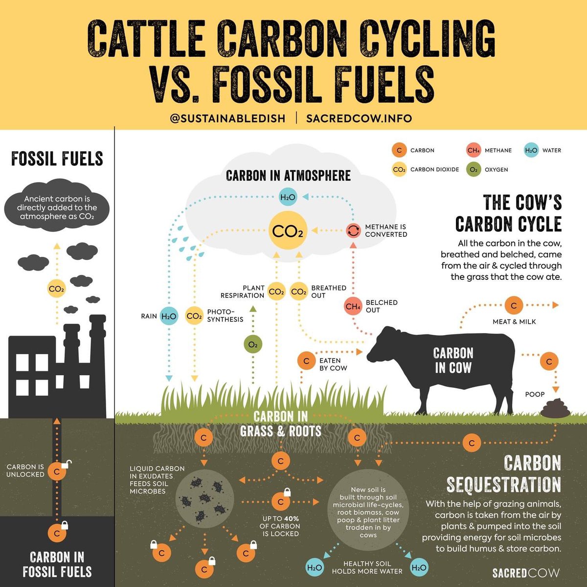 It’s part of the natural carbon cycle, where CH4 is broken down after 10 years into CO2, which is in turn recycled via photosynthesis & further rumination ♻️