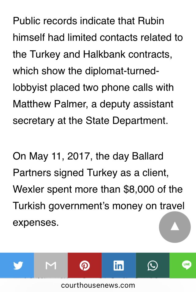 Public records indicate that Rubin himself had limited contacts related to the Turkey and Halkbank contracts, which show the diplomat-turned-lobbyist placed two phone calls with Matthew Palmer, a deputy assistant secretary at the State Department.
