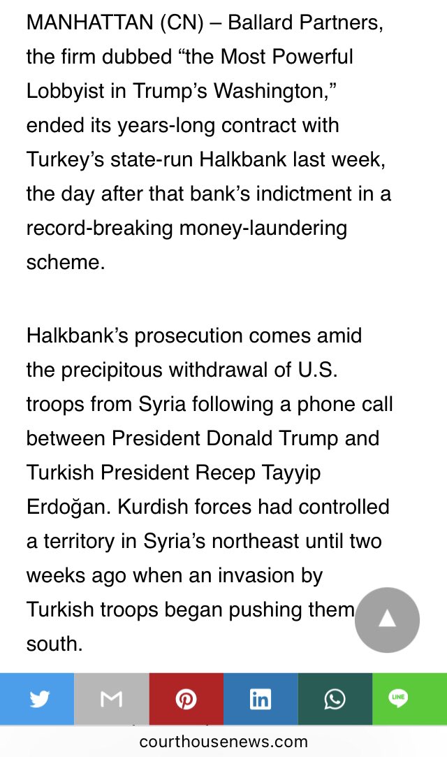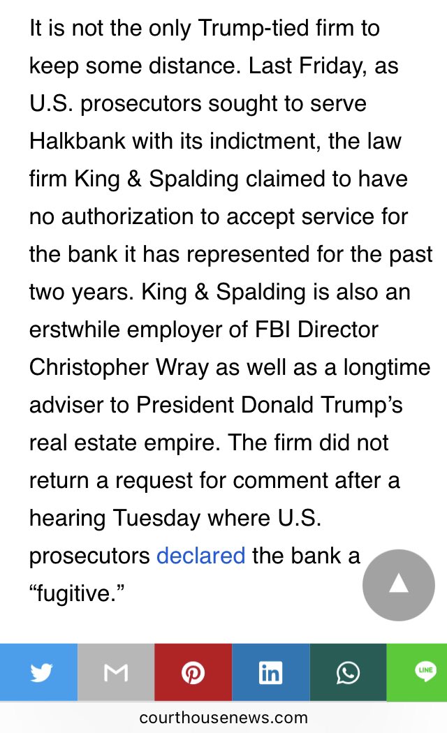 🔥🔥➡️ It is not the only Trump-tied firm to keep some distance. Last Friday, as U.S. prosecutors sought to serve Halkbank with its indictment, the law firm King & Spalding claimed to have no authorization to accept service for the bank it has represented for the past two years.
