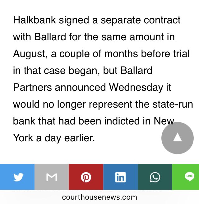 Halkbank signed a separate contract with Ballard for the same amount in August, a couple of months before trial in that case began, but Ballard Partners announced Wednesday it would no longer represent the state-run bank that had been indicted in New York a day earlier.
