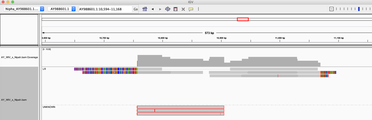 Not only are reads found that map to many parts of the Nipah virus, the reads that map to the end of the virus have novel sequence.