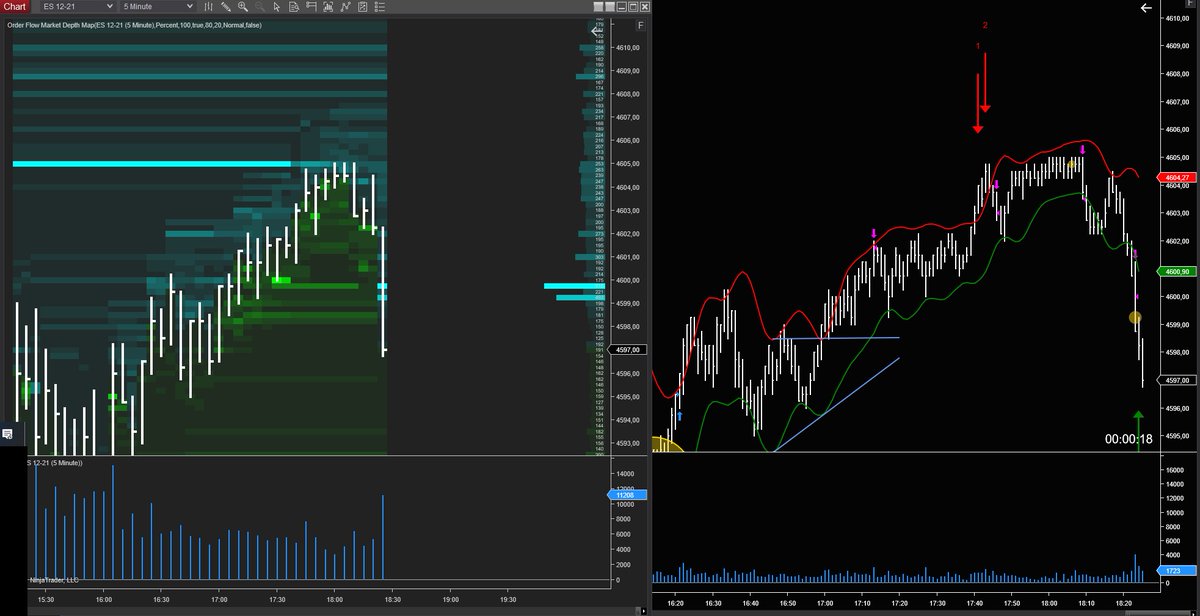 Observo que si el precio quiere seguir se deben aumentar las órdenes agresivas lo que implica un aumento del volumen. Atento a lo mencionado, para que haya un aumento de volumen debe haber mucha liquidez en el ask, osea oferta. Esta idea ayuda aentender porqué un volumen