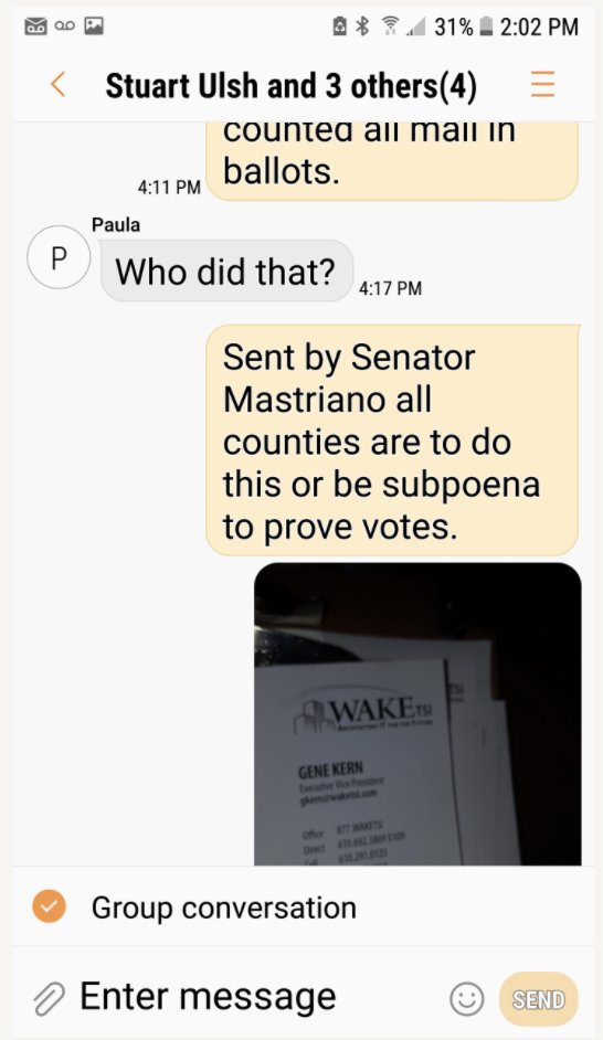 NEW: We obtained text messages sent by Fulton County, Penn. commissioners that indicate the county’s Dec. 31 initial evaluation of voting machines conducted by Wake TSI may have been prompted by a subpoena threat by Sen. Doug Mastriano. americanoversight.org/american-overs…