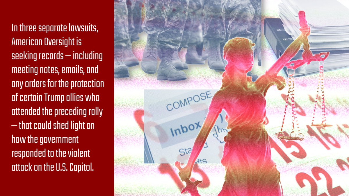 We have filed dozens of FOIAs related to the attacks. Yesterday, we sued for records that could shed light on what was going on behind the scenes when requests for the deployment of National Guard troops to help secure the Capitol were delayed for hours. americanoversight.org/document/compl…