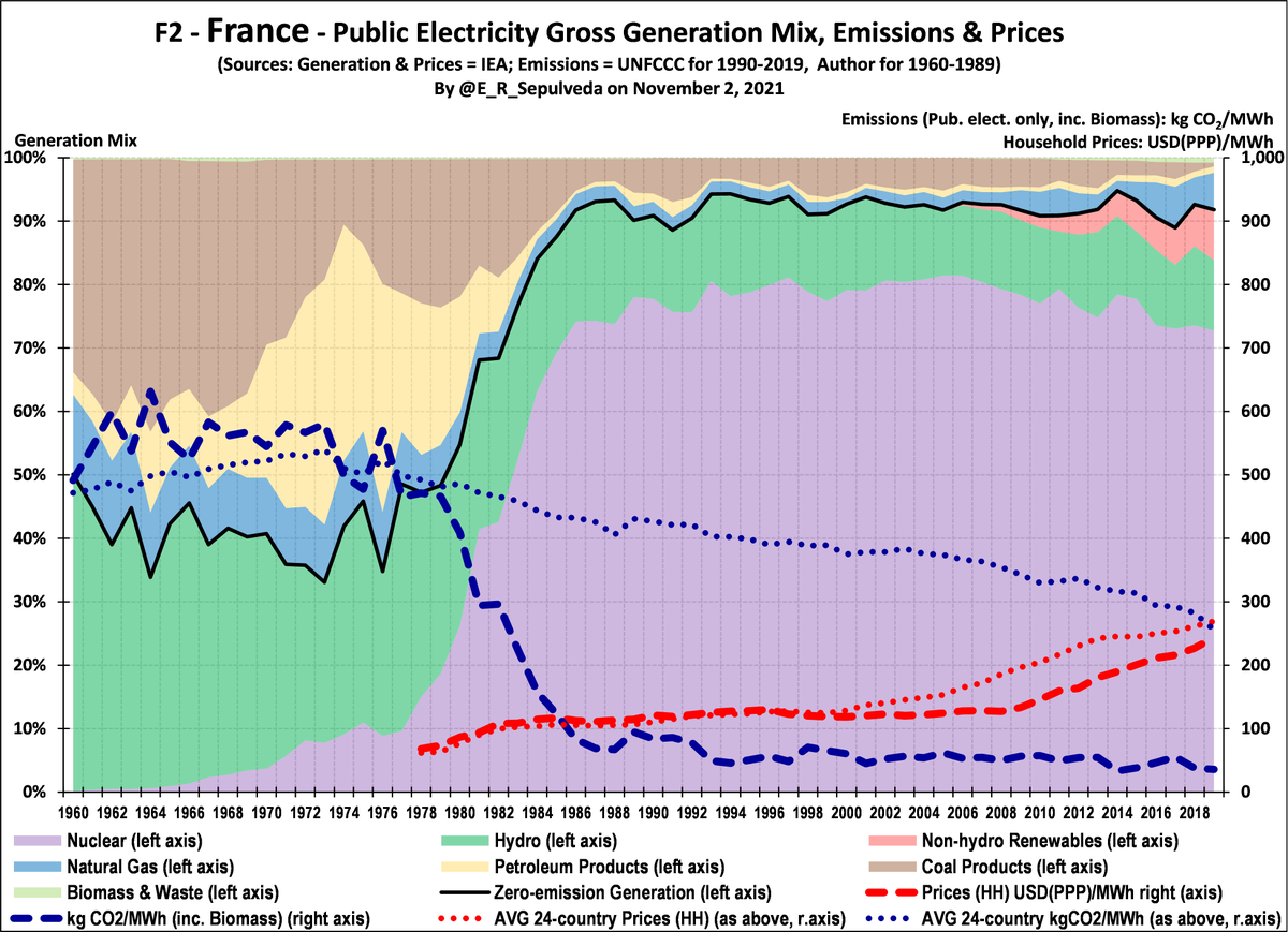 France reduced emissions intensity by 80% in 11 peak years of nuclear rollout of late-1970s. Went from AVG to very low emissions, maintaining AVG prices.