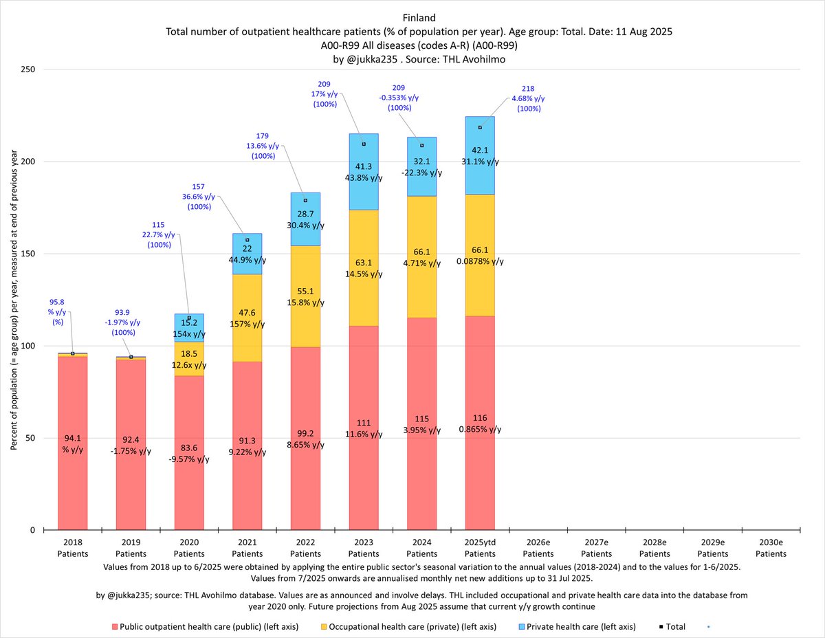 Suomen epidemia 14.9.2025: kaikkien sairauksien potilasmäärä vuoden 2025 alusta ylittää jo nyt pandemian edellisten vuosien potilasmäärät, ja vuotta on vielä 5 kuukautta jäljellä. 2/x