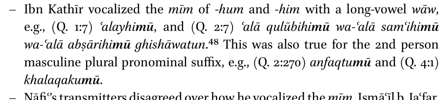 3. "They would also add a ḍamma at the end of a word, as well as a waw; i.e., alayhimū."