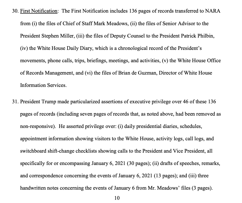 In his filing, Trump claims the FBI and Senate have concluded there was no overarching conspiracy behind Jan. 6 attack. This is not true in either case. politico.com/news/2021/11/0…