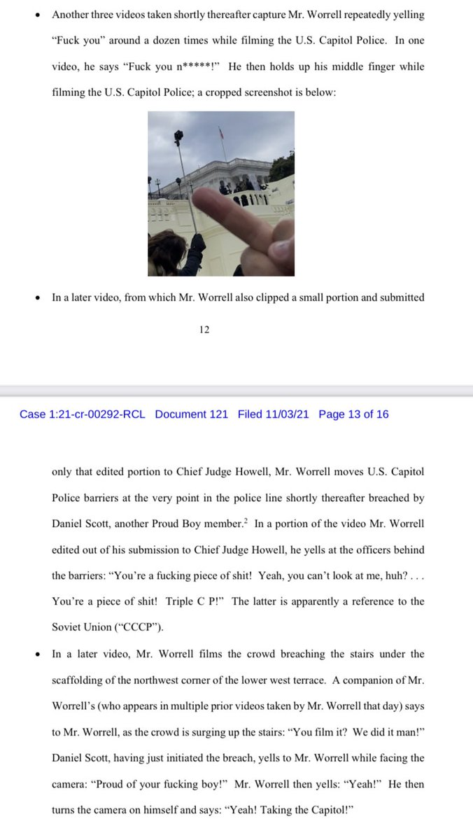 Detained Jan. 6 rioter and Proud Boy Christopher Worrell has told judges, interviewers and his own lawyers he never confronted/threatened Capitol Police.