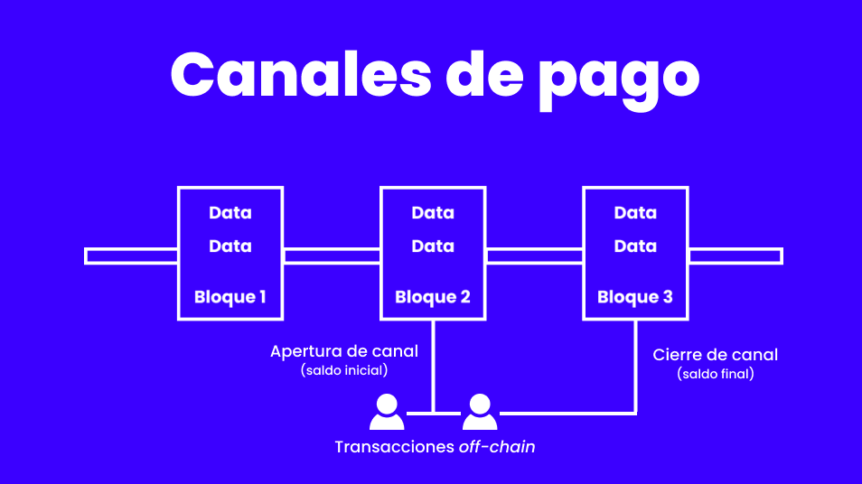 Lightning permite realizar transacciones fuera de la cadena (off-chain) y preservar el uso de la red para registrar sólo las de mayor importancia. Esto se logra a través de la creación de canales de pago.
