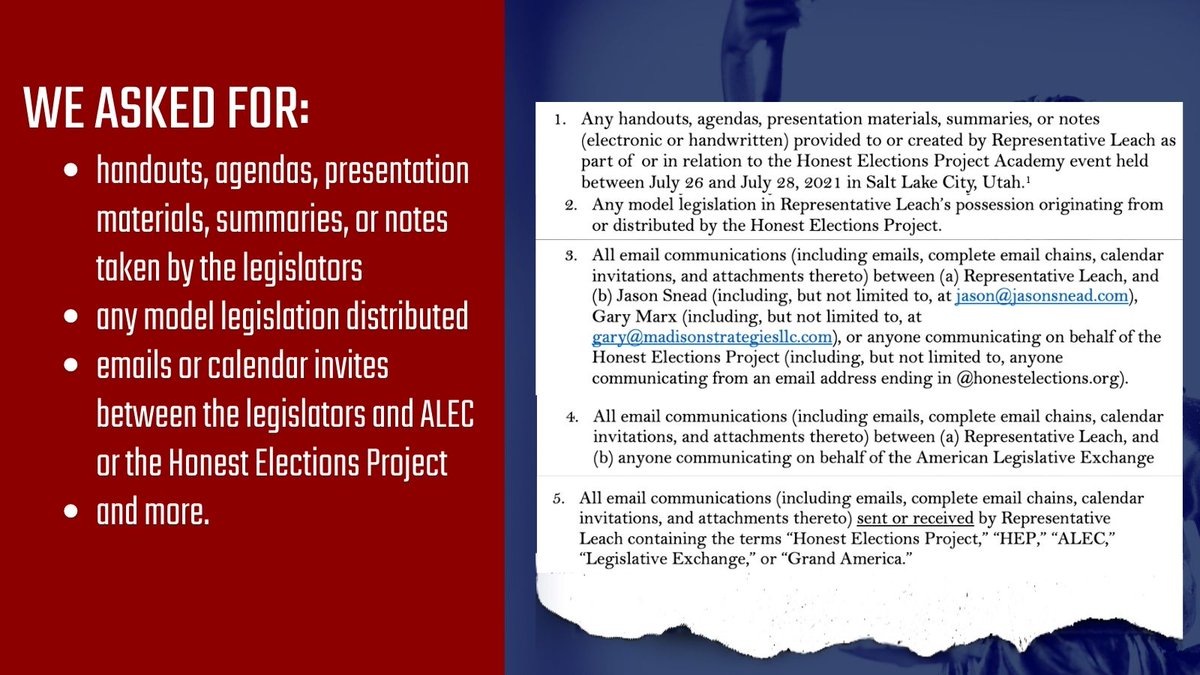 -emails or calendar invites between the legislators and ALEC or the Honest Elections Project