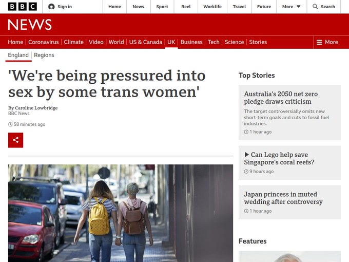 Firstly, and most obviously, the article that platformed a murderous, genocidal, transphobic sexual abuser to testify that trans women were sexual abusers is still proudly up on the BBC website.