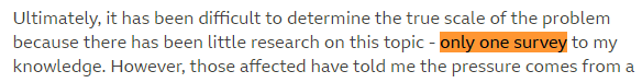 Even the article's writer, Caroline Lowbridge, is forced to admit she cannot verify if this "huge problem" is actually real.