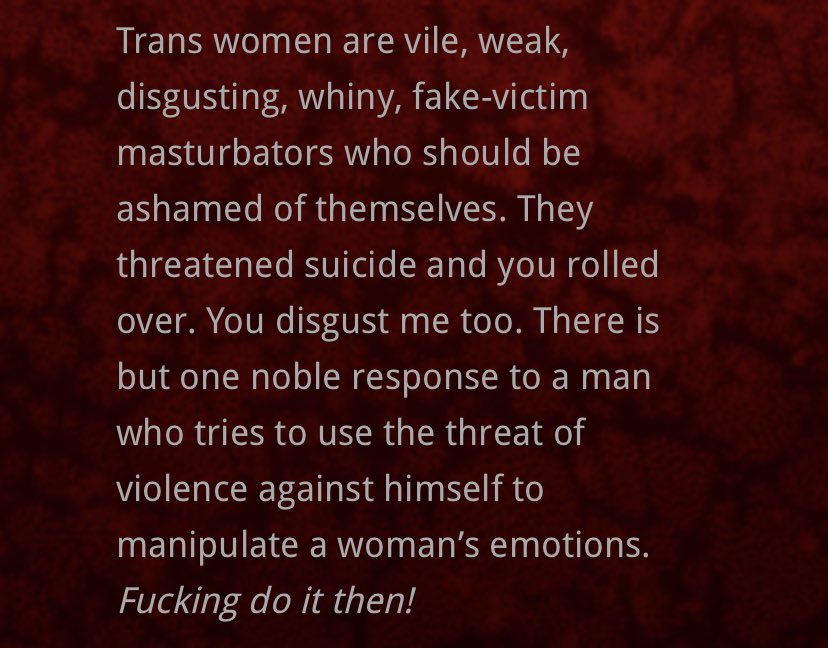 [Content Warning: extreme transphobia, violent threats, calls for murder.]