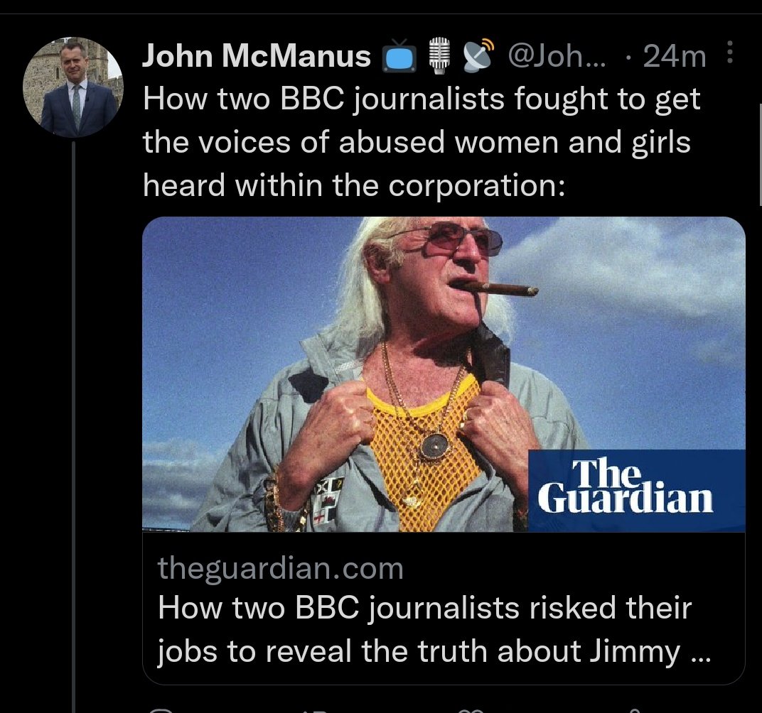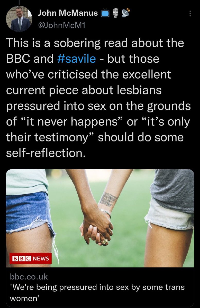 None of this was quite enough for BBC journalist John McManus however, who took to Twitter to compare LGBTQ+ people to paedophile Jimmy Saville for complaining about the article's bigotry and lack of journalistic standards.