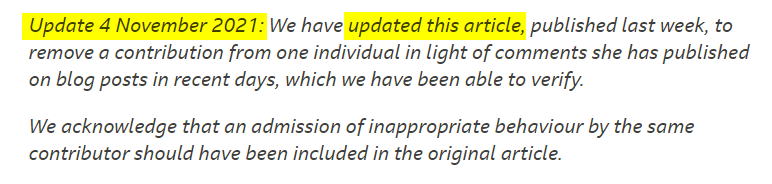 Chelsea Poe (@ChelseaPoe666) has kept a record of her unpublished involvement with the article, which can be found here.