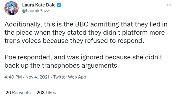 A good thread by Laura Kate Dale, analysing the coverage of the BBC scandal by the UK Guardian (an ostensibly left wing newspaper that has become extremely hateful towards the LGBTQ+ community) can be found below: