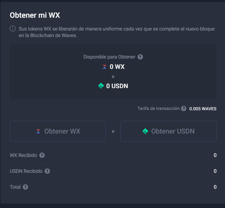 Aquí el panel en el que podrás decidir luego si ir sacando los WX o si recuperar los USDN porque no te interesa el precio al que está el WX
