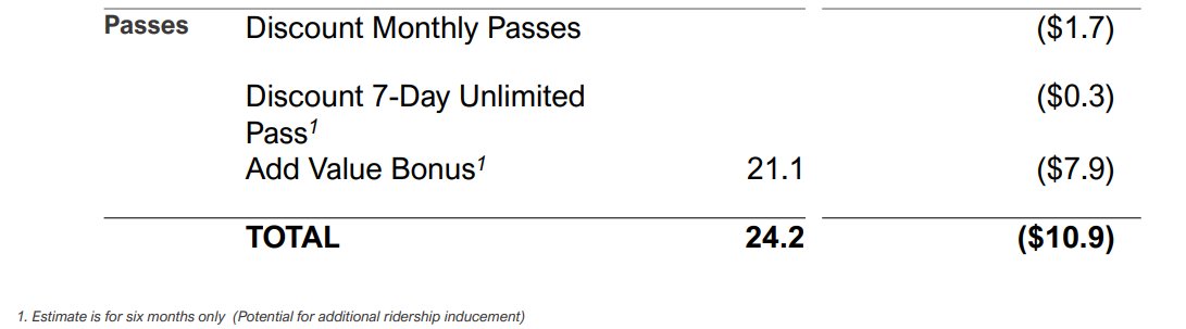 One thing that I missed in our first pass: the $5 bonus when you buy $25 in fares and the discounted 7-day pass was proposed only for the first six months of the budget (July 2022 to the end of 2022). Was in a footnote, but not in the text of the budget.