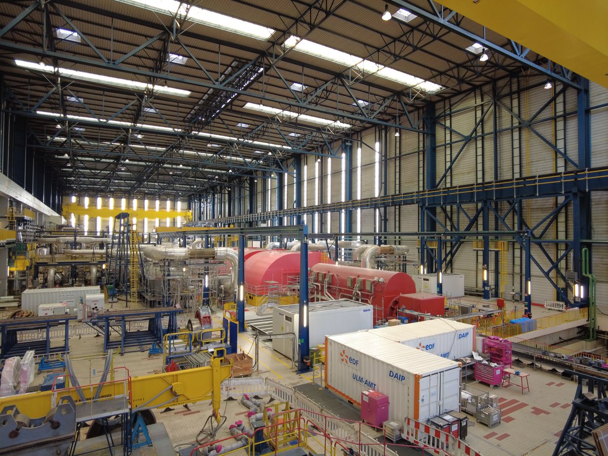 Nous avons traversé la salle des machines qui abrite la turbine le condenseur et l’alternateur. Les circuits secondaires et tertiaires sont également vérifiés au cours de la VD4. Ex: une épreuve hydraulique est réalisée sur le secondaire après contrôle non destructif des soudures