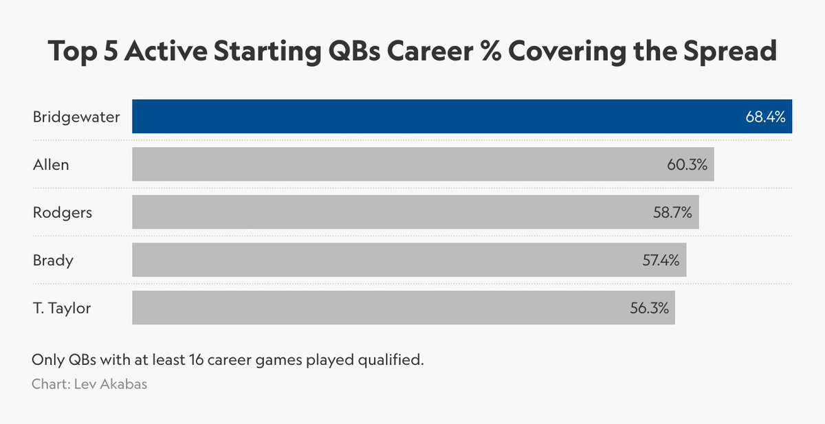 ๐ Fun Fact #6: With the @Broncos win on Sunday, Teddy Bridgewater is now 39-17-1 career against the spread, which is leaps and bounds ahead of every other active starting QB in the #NFL